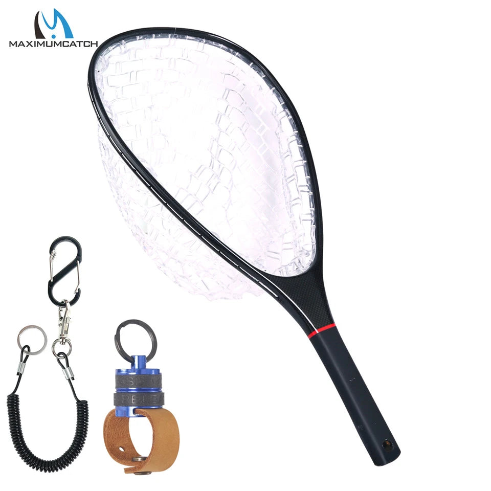 Maximumcatch Fly Fishing Landing Net Carbon Frame Nomad Hand Strong & Light Clear Rubber Net